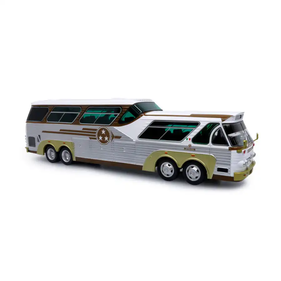 Autobús Sultana Panoramico SP TM de Edición Especial «Tres Estrellas de Oro» hecho por la marca Iconic Replicas. Este modelo de bus a escala fabricado en alta calidad tiene llantas de goma, cuerpo de metal y es perfecto para coleccionistas y fanáticos de los autobuses Sultana.