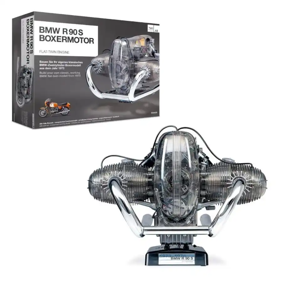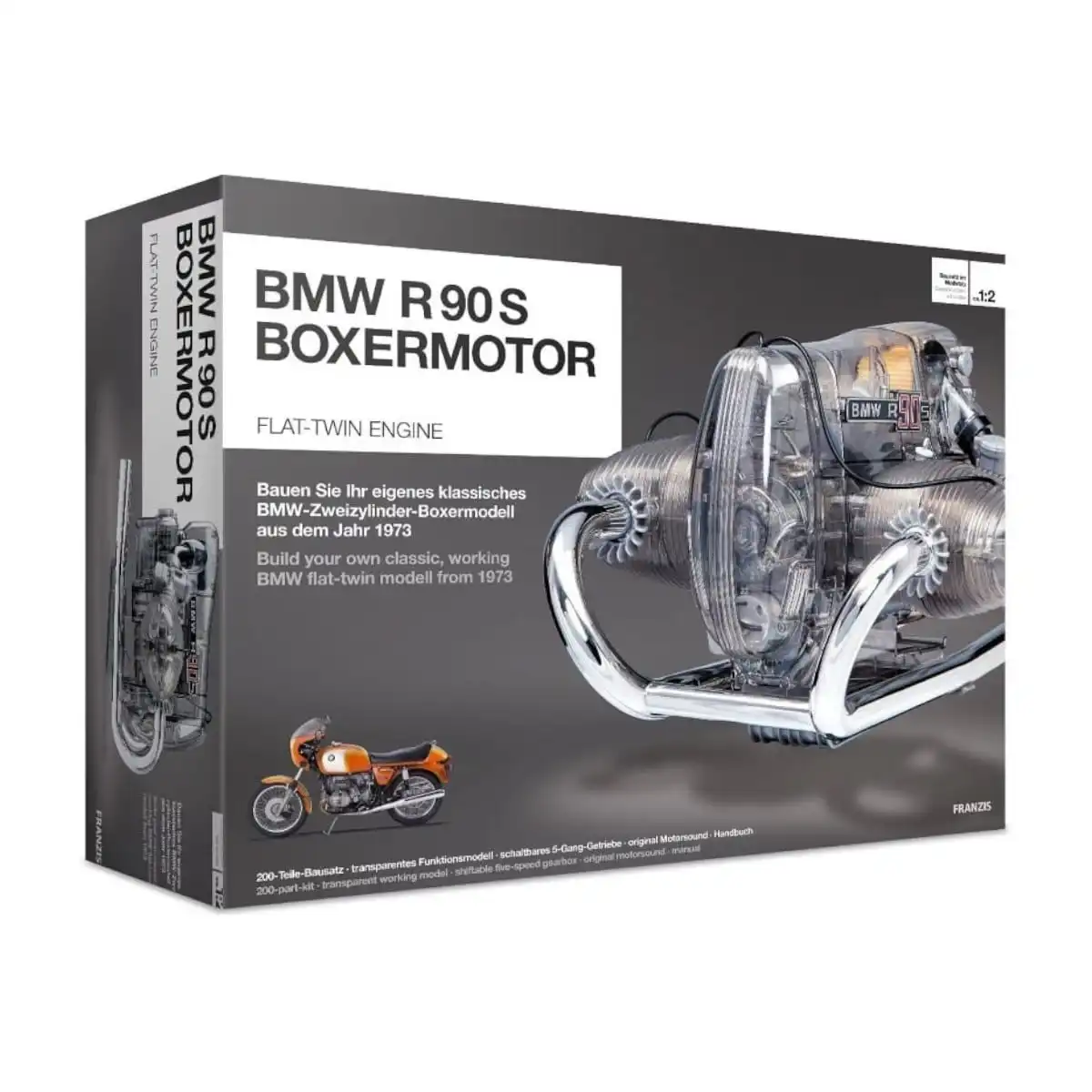 Increíble motor a escala para armar, funcional y con sonido BMW R90S Boxer Flat Twin de 1973. Hecho por la marca Franzis. Este motor a escala armable cuenta con partes movibles, sonido como el real, funcional con pilas AA, incluye libro de direcciones y fotos de la historia del motor, es perfecto para coleccionistas de BMW.