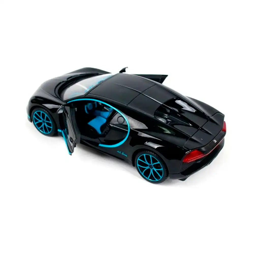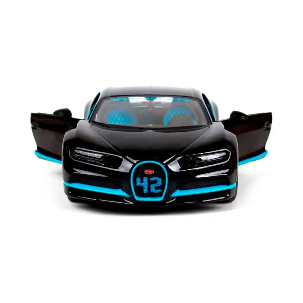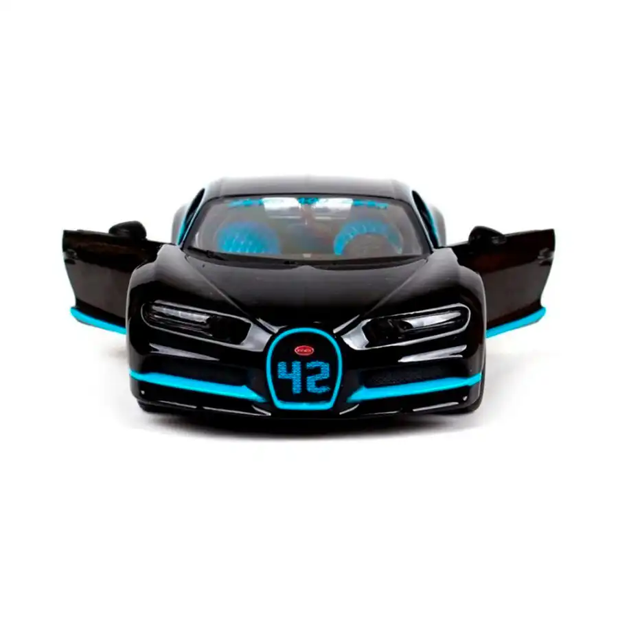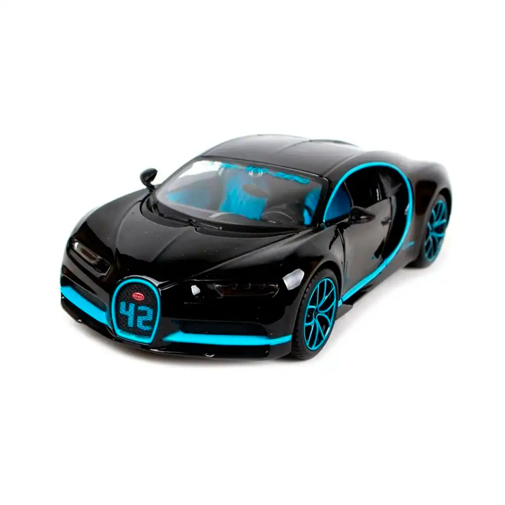 Bugatti Chiron de edición especial «42 Seconds» de la marca Maisto. Este modelo de auto a escala fabricado en alta calidad cuenta con puertas que se abren, llantas de goma y es perfecto para coleccionistas y fanáticos de la marca Bugatti.