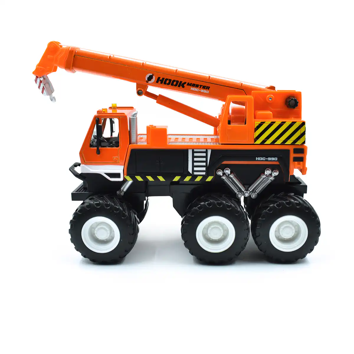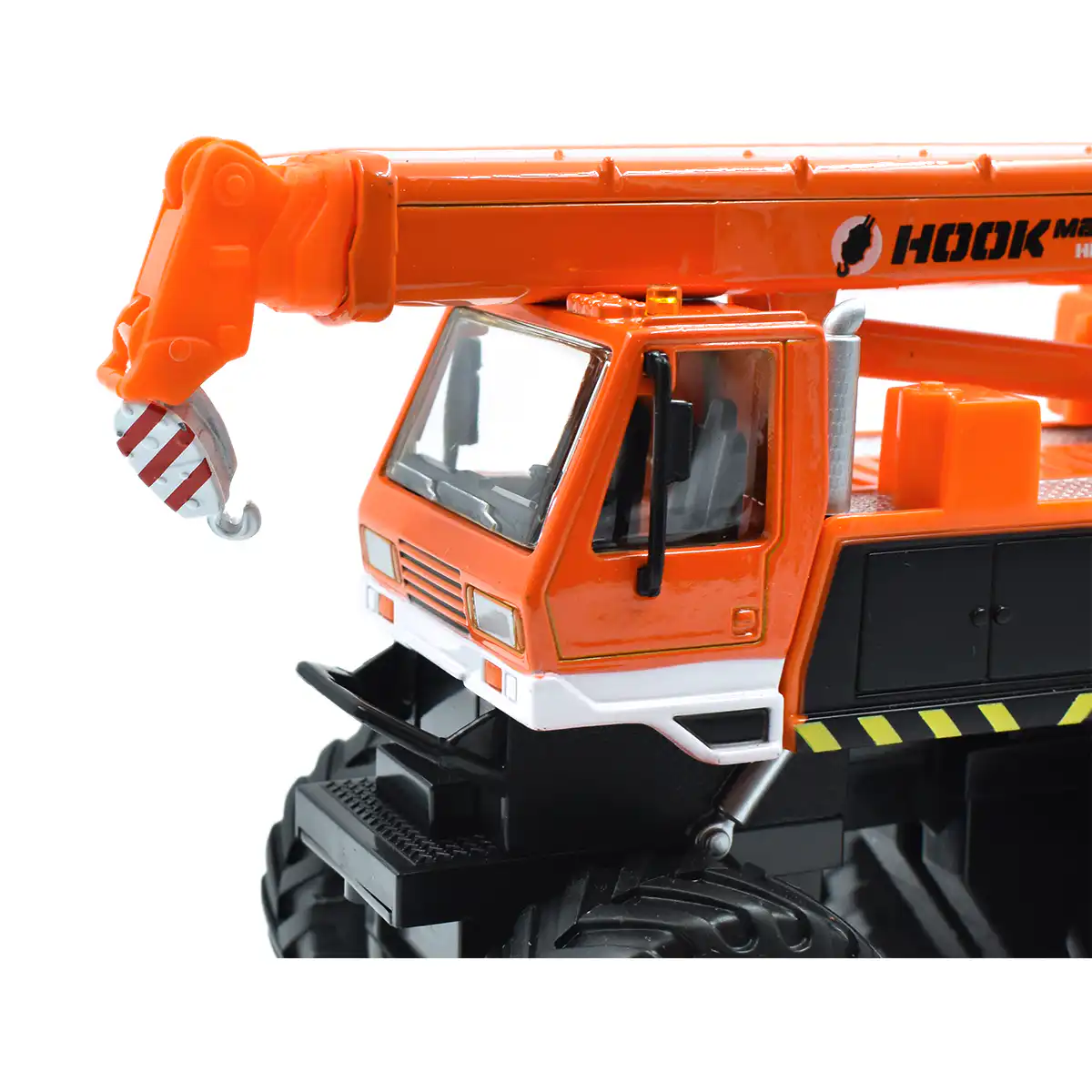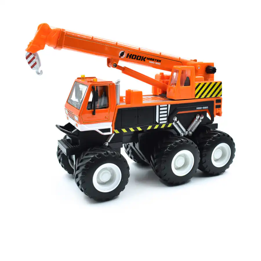 Camión Grúa Pluma en color naranja de Edición Especial “Builder Zone” hecho por la marca Maisto. Este modelo de auto a escala fabricado en alta calidad tiene llantas de goma, fricción y brazo de grúa movible.