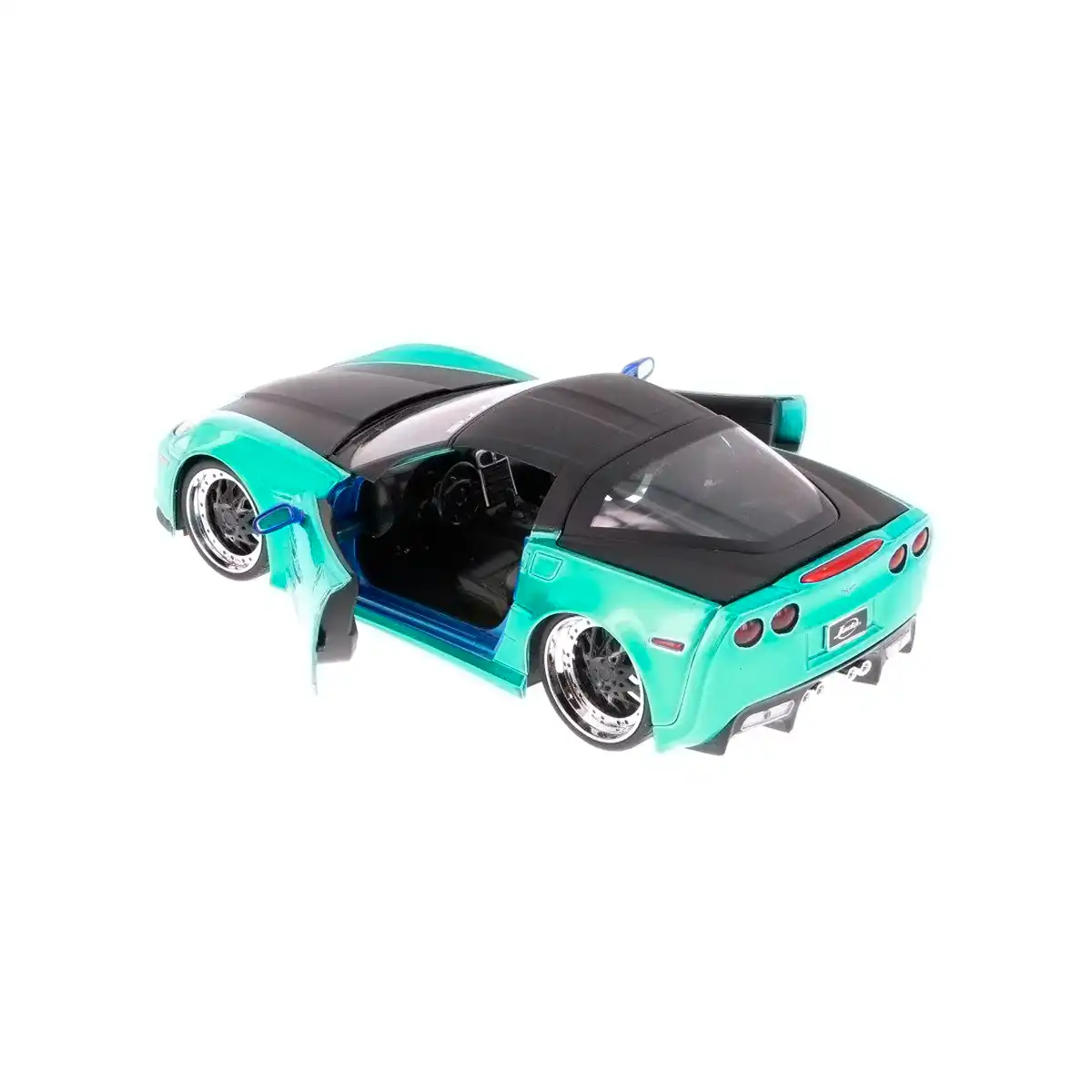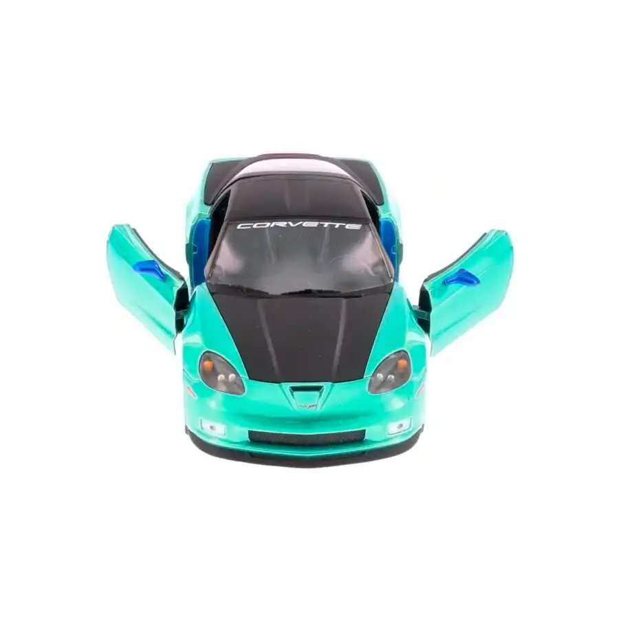 Chevy Corvette Z06 2006 en color azul de Edición Especial “Big Time Muscle” hecho por la marca Jada. Este modelo de auto a escala fabricado en alta calidad tiene puertas, cajuela y cofre que se abren, llantas de goma, es perfecto para coleccionistas y fanáticos de Chevrolet.