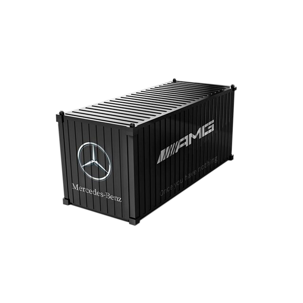 increíble diorama de contenedor de metal de Edición Especial “Mercedes AMG” para exhibir tus autos a escala 1:64 con estilo. Hecho por la marca TimeBox. Este diorama cuenta con puertas que se abren y es perfecto para coleccionistas.