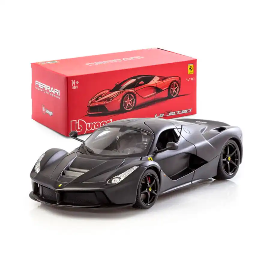 Ferrari LaFerrari en color negro mate de Edición Especial “Signature Series” hecho por la marca Bburago. Este modelo de auto a escala fabricado en alta calidad tiene puertas, cofre y tapa de motor que se abren, llantas de goma y es perfecto para coleccionistas y fanáticos de la marca Ferrari.