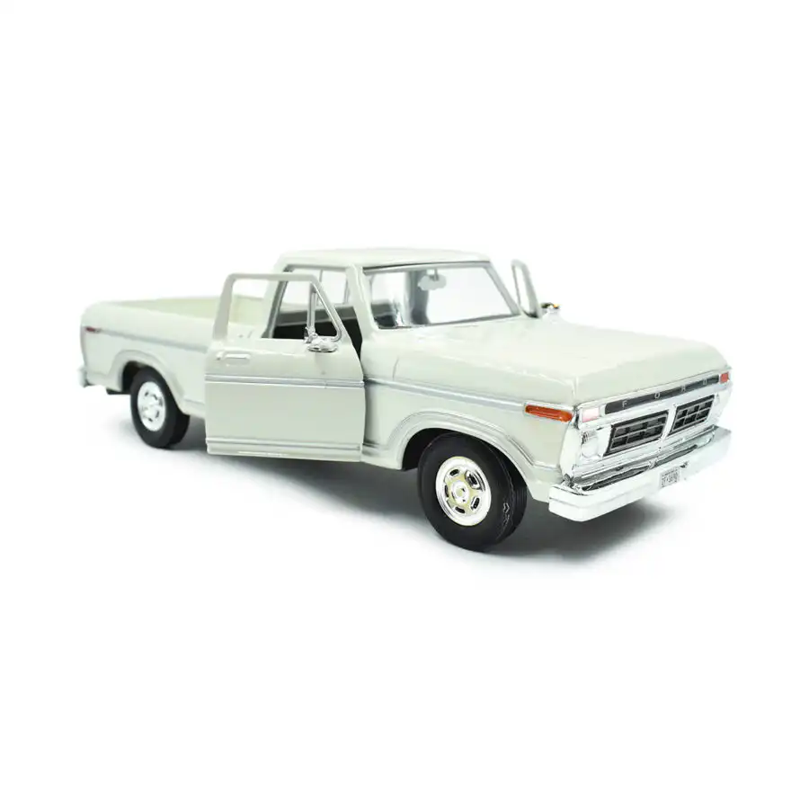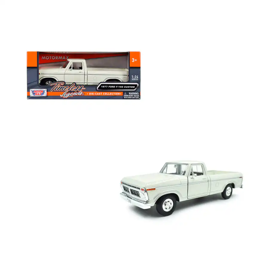 Ford F-150 Custom 1977 Pickup en color blanco de Edición Especial «Timeless Legends«, Auto a escala hecho por la marca Motor Max para coleccionistas y fanáticos de Ford.