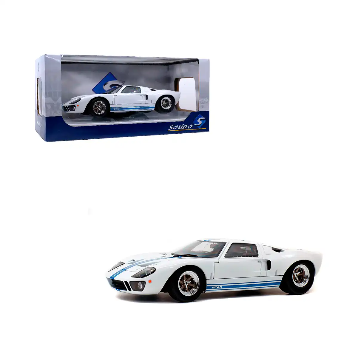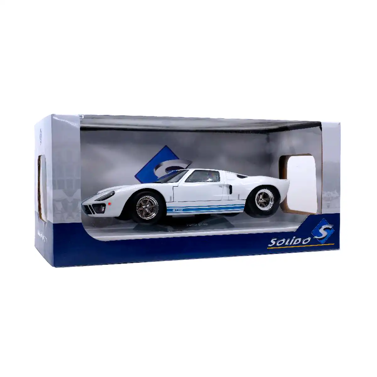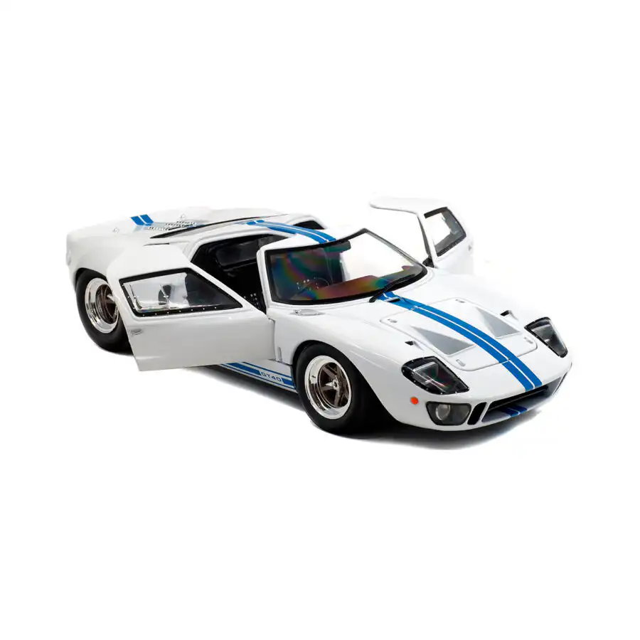 Ford GT40 1968 color blanco de Edición Especial “MK1” hecho por la marca Solido. Este modelo de auto a escala fabricado en alta calidad tiene puertas que se abren, llantas de goma y es perfecto para coleccionistas y fanáticos de la marca Ford.