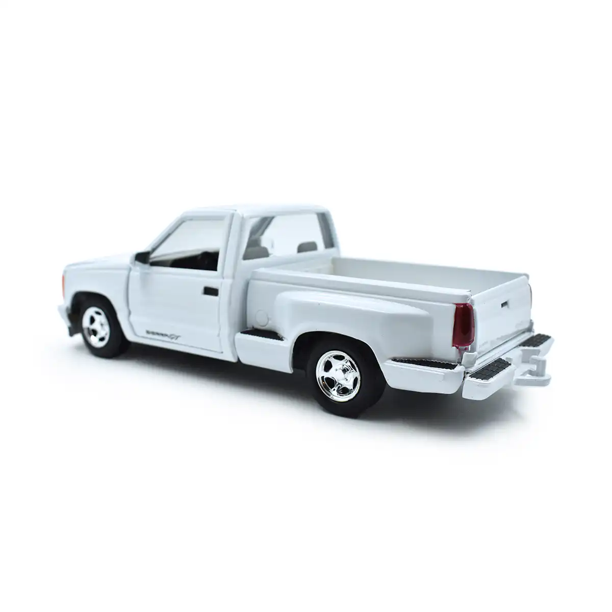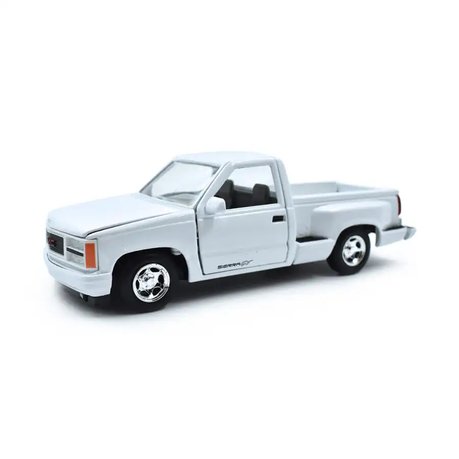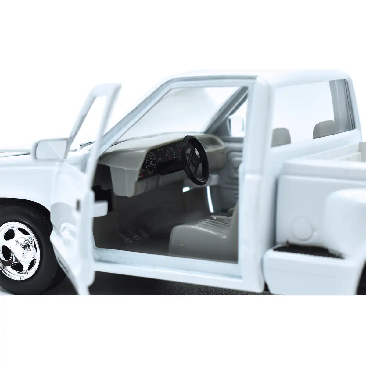 GMC Sierra GT Pickup 1992 en color blanco de Edición Especial “Timeless Legends” hecho por la marca Motor Max. Este modelo de auto a escala fabricado en alta calidad tiene puertas, cofre y batea que se abren, llantas de goma y es perfecto para coleccionistas y fanáticos de la marca GMC.