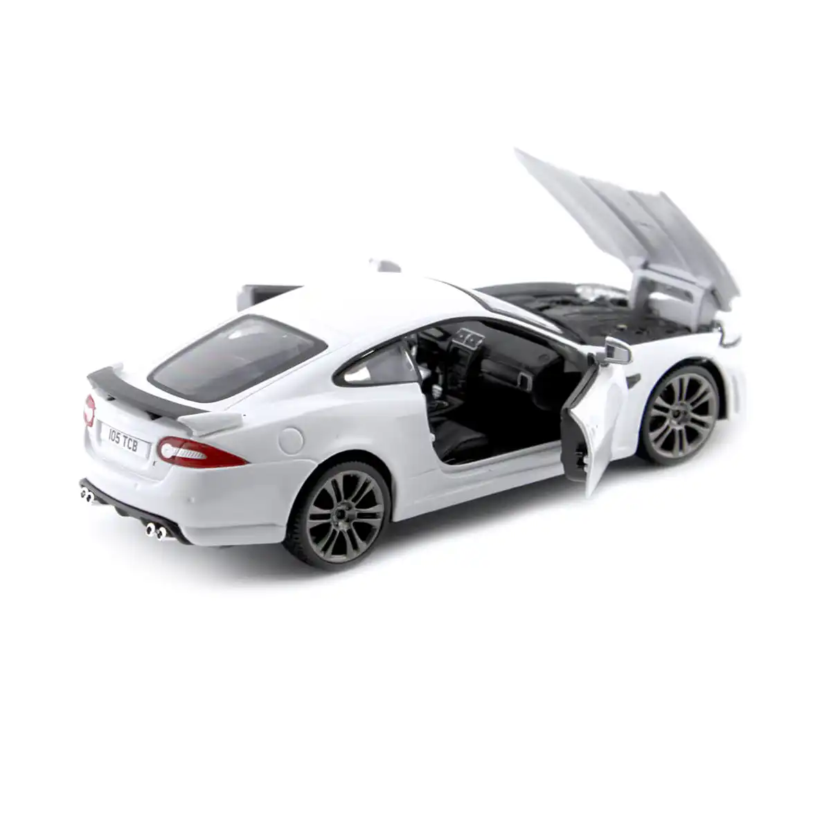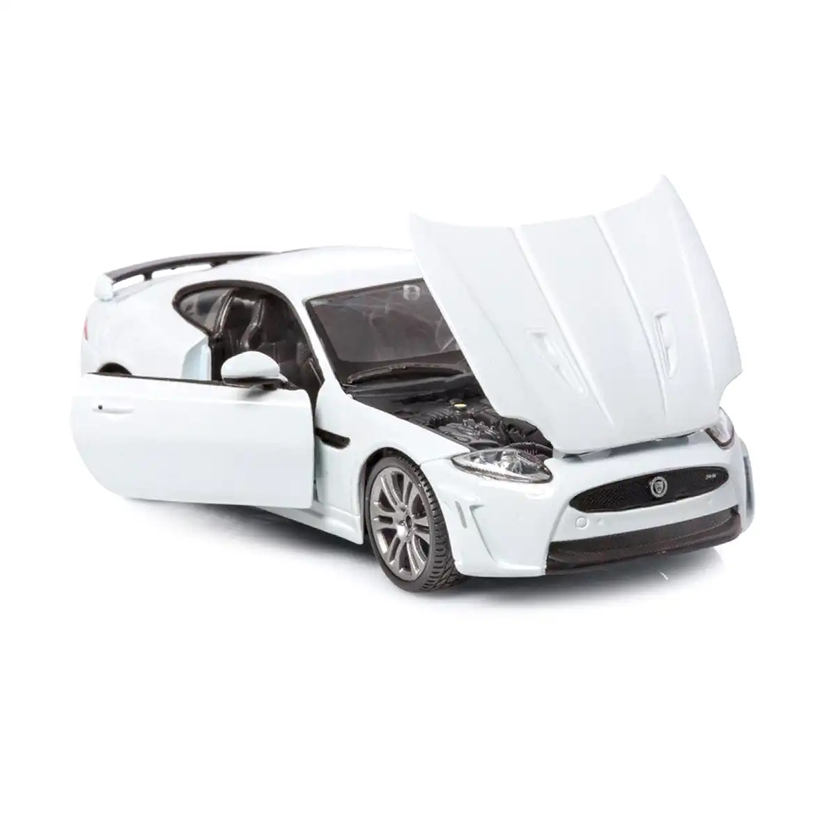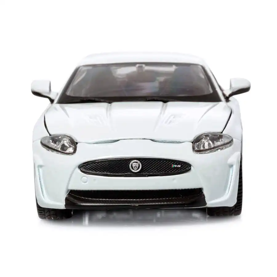 Jaguar XKR-S Coupe en color blanco de edición especial “Collectors” de la marca Burago. Este modelo de auto a escala fabricado en alta calidad cuenta con puertas y cofre que se abren, llantas de goma y es perfecto para coleccionistas y fanáticos de Jaguar.