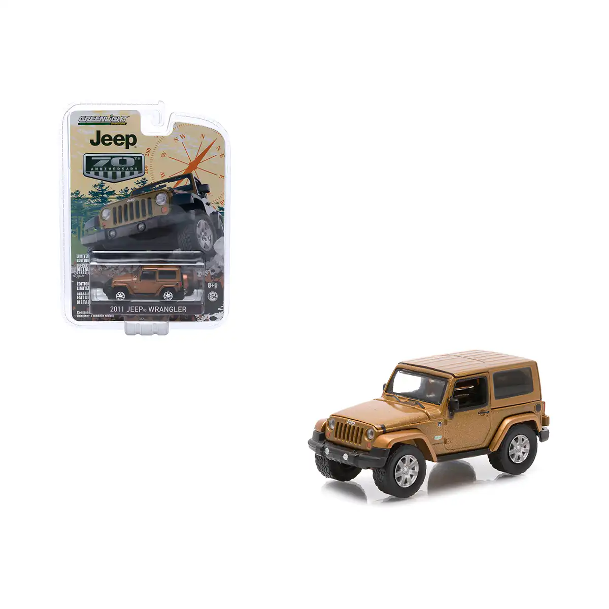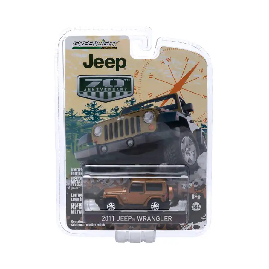 Jeep Wrangler 2011 en color café de Edición Especial “70 Aniversario” de la marca Greenlight. Este modelo de auto a escala fabricado en alta calidad cuenta con llantas de goma y es perfecto para coleccionistas y fanáticos de la marca Jeep.