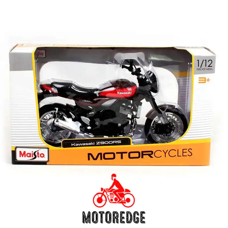 Kawasaki Z900 RS en color rojo de Edición Especial “Cafe Racer” hecha por la marca Maisto. Este modelo de moto a escala fabricada en alta calidad tiene llantas de goma, es perfecto para coleccionistas y fanáticos de la marca Kawasaki.