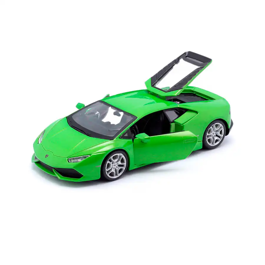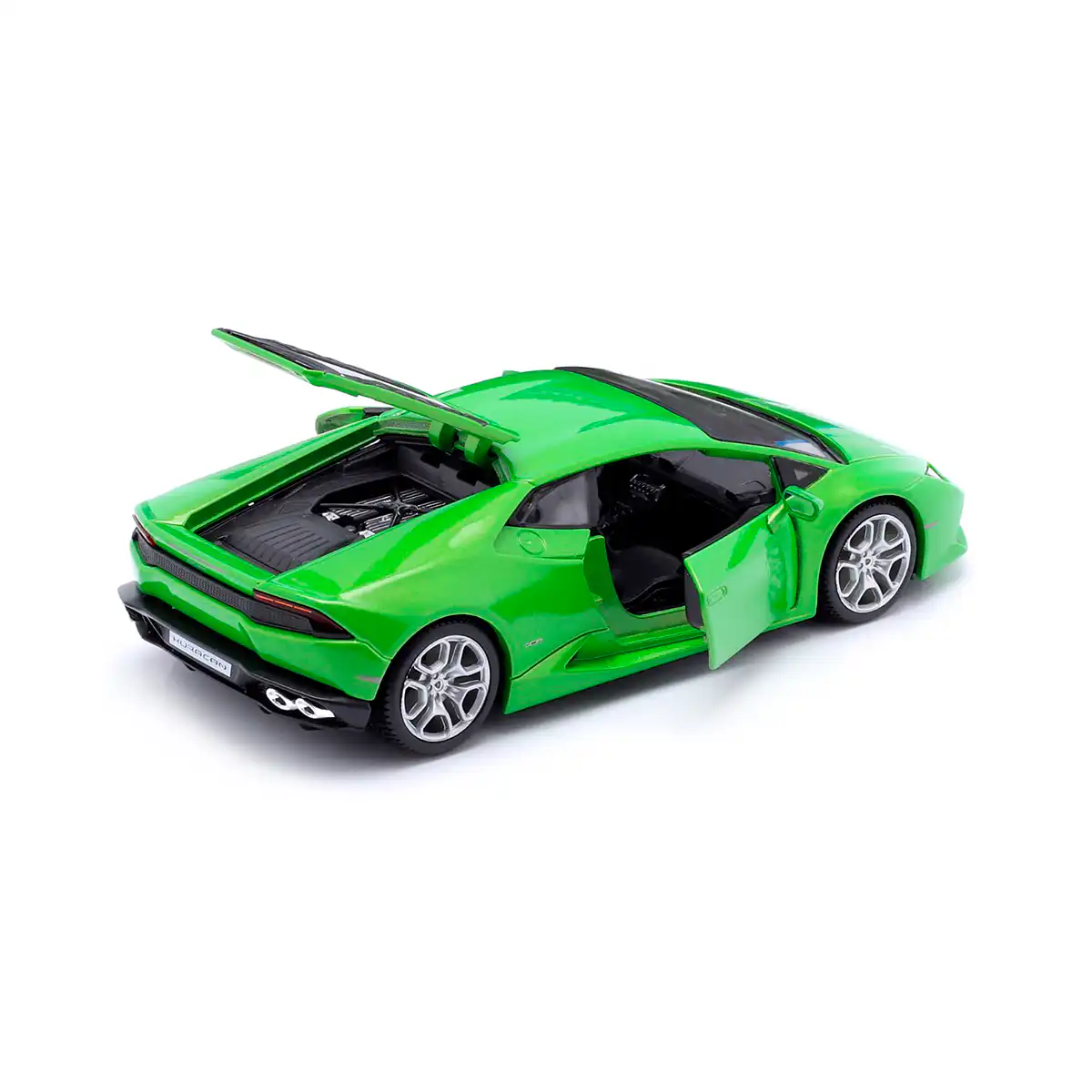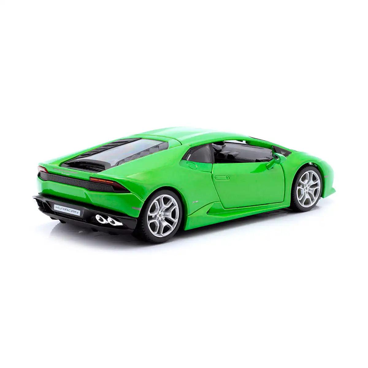 Lamborghini Huracán LP 610 en color verde de Edición Especial hecho por la marca Maisto. Este modelo de auto a escala fabricado en alta calidad tiene puertas y tapa de motor que se abren, llantas de goma, ​​es perfecto para coleccionistas y fanáticos de Lamborghini.
