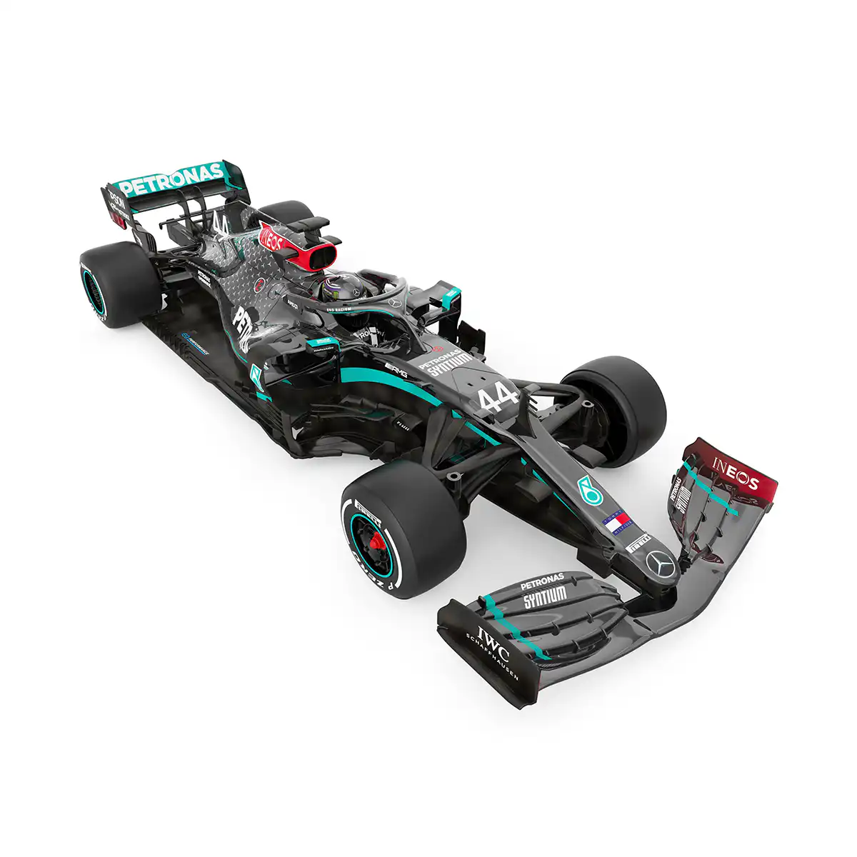Adquiere este EXCLUSIVO Mercedes AMG Petronas F1 W11 EQ Performance de Radio Control en escala 1/12 de Edición Especial “Lewis Hamilton #44” hecho por la marca Rastar. Este modelo fabricado en alta calidad tiene llantas de goma, es perfecto para divertirse y para los fanáticos de la Fórmula 1.