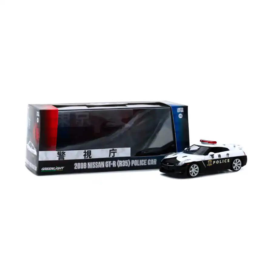 Nissan GTR R35 2008 de Edición Especial “Patrulla Policía” hecho por la marca Greenlight. Este modelo de auto a escala fabricado en alta calidad incluye una caja de acrílico, base de plástico, llantas de goma y es perfecto para coleccionistas y fanáticos de Nissan.
