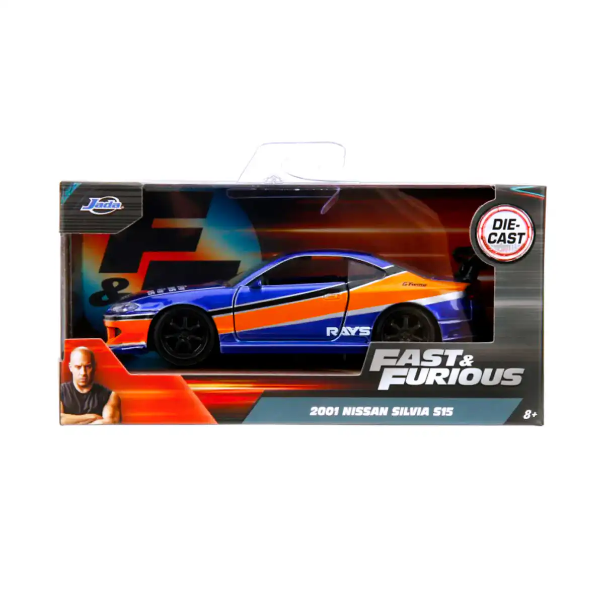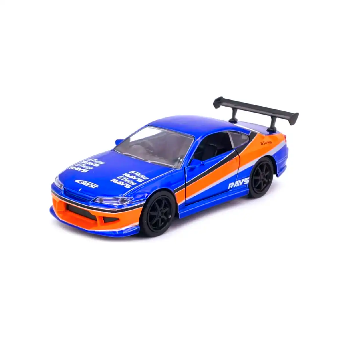 Nissan Silvia S15 2001 de Edición Especial “Mona Lisa | Rápido y Furioso” hecho por la marca Jada. Este modelo de auto a escala fabricado en alta calidad tiene puertas que se abren, llantas de goma y es perfecto para coleccionistas y fanáticos de la película Rápido y Furioso Reto Tokio y Nissan.
