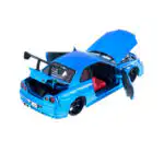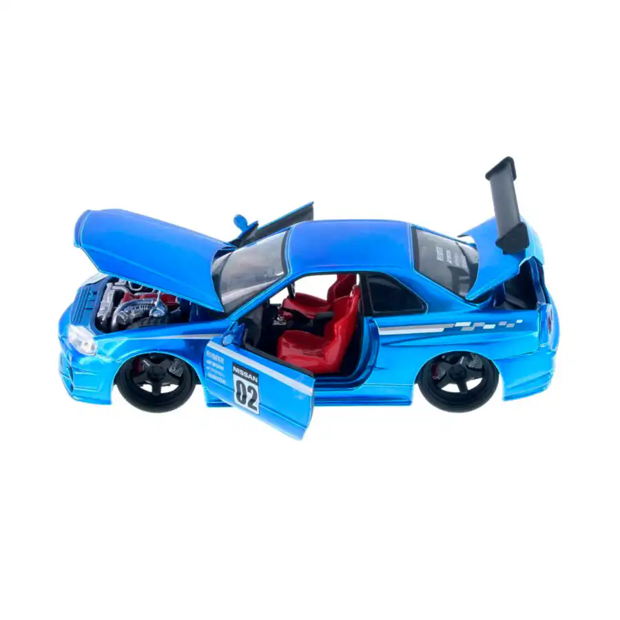 Nissan Skyline GTR R34 2002 en color azul de Edición Especial “JDM Tuners” hecho por la marca Jada. Este modelo de auto a escala fabricado en alta calidad tiene puertas, cajuela y cofre que se abren, llantas de goma, es perfecto para coleccionistas y fanáticos de Nissan.