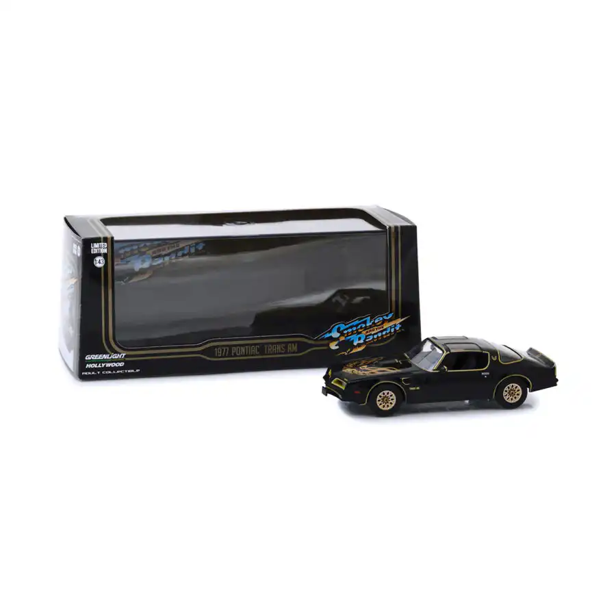 Pontiac Trans AM 1977 de Edición Limitada “Smokey and the Bandit” hecho por la marca Greenlight. Este modelo de auto a escala fabricado en alta calidad incluye una caja de acrílico, base de plástico, llantas de goma y es perfecto para coleccionistas y fanáticos de Pontiac.