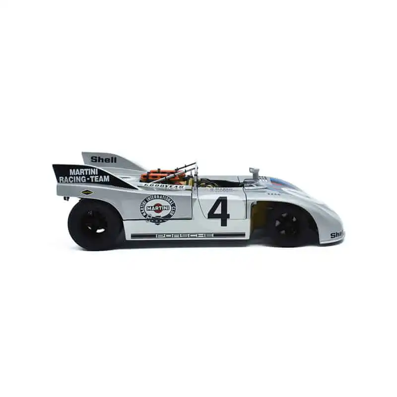 Exclusivo Porsche 908 1971 de Edición Especial “Nurburgring Martini Racing” hecho por la marca AUTOart en su gama más alta Signature. Este modelo de auto a escala fabricado en alta calidad tiene puertas y tapa de motor que se abren, llantas de goma, incluye Certificado de Autenticidad y es perfecto para coleccionistas y fanáticos de la marca Porsche.