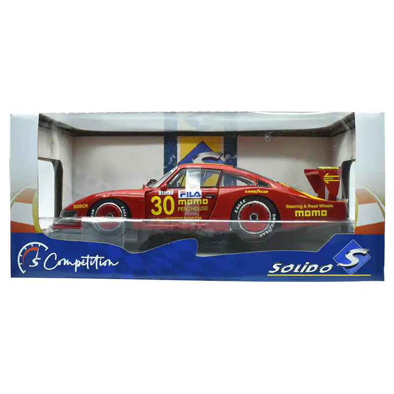 Porsche 935 de Edición Limitada «MOMO Norisring» hecho por la marca Solido. Este modelo de auto a escala fabricado en alta calidad tiene llantas de goma, abre puertas, es perfecto para coleccionistas y fanáticos de Porsche.