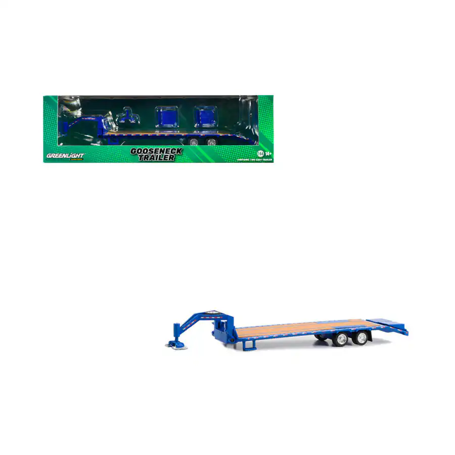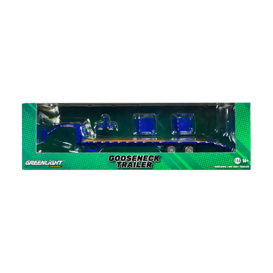 Remolque Cuello de Ganso para Autos a Escala 1/64 en color azul de Edición Especial «Gooseneck Tráiler» hecho por la marca Greenlight. Perfecto para coleccionistas que quieran complementar su colección de autos escala 1/64.
