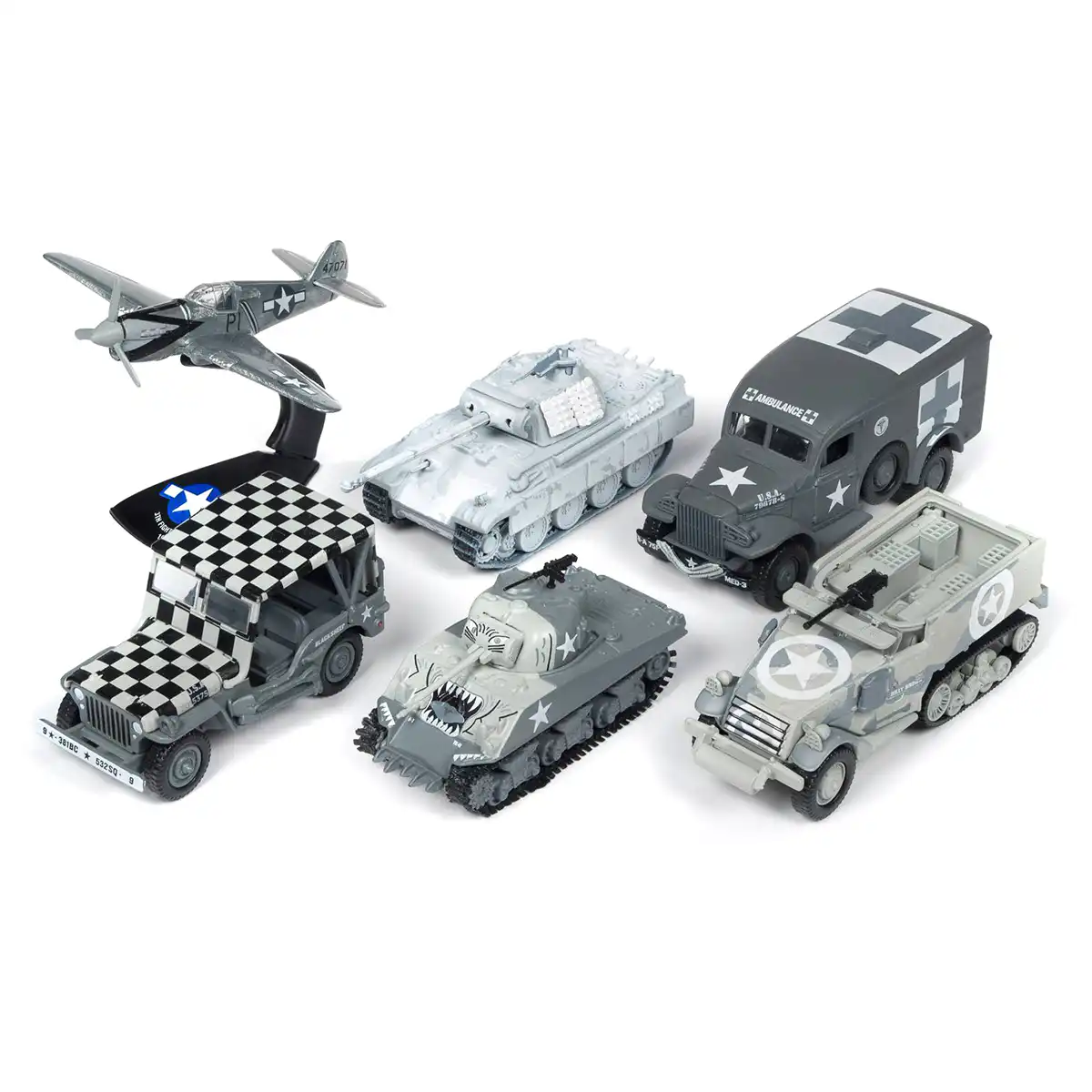 Increíble serie de 5 piezas de modelos militares de edición especial “Greatest Generation” con diseños exclusivos. Estos modelos fabricados en alta calidad tienen llantas de goma y son perfectos para coleccionistas y fanáticos de los Autos y modelos militares.