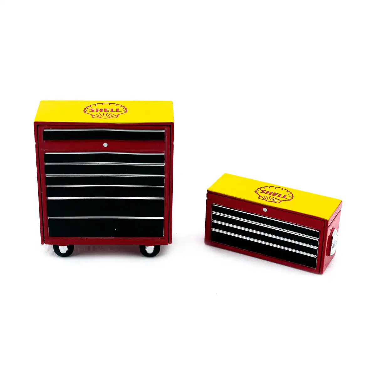 Set Herramientas De Garage de Edición Especial “Shell” hecho por la marca GMP. Estos accesorio para autos a escala 1:18 están fabricados en metal con partes plásticas, perfecto para coleccionistas y fanáticos de Shell.