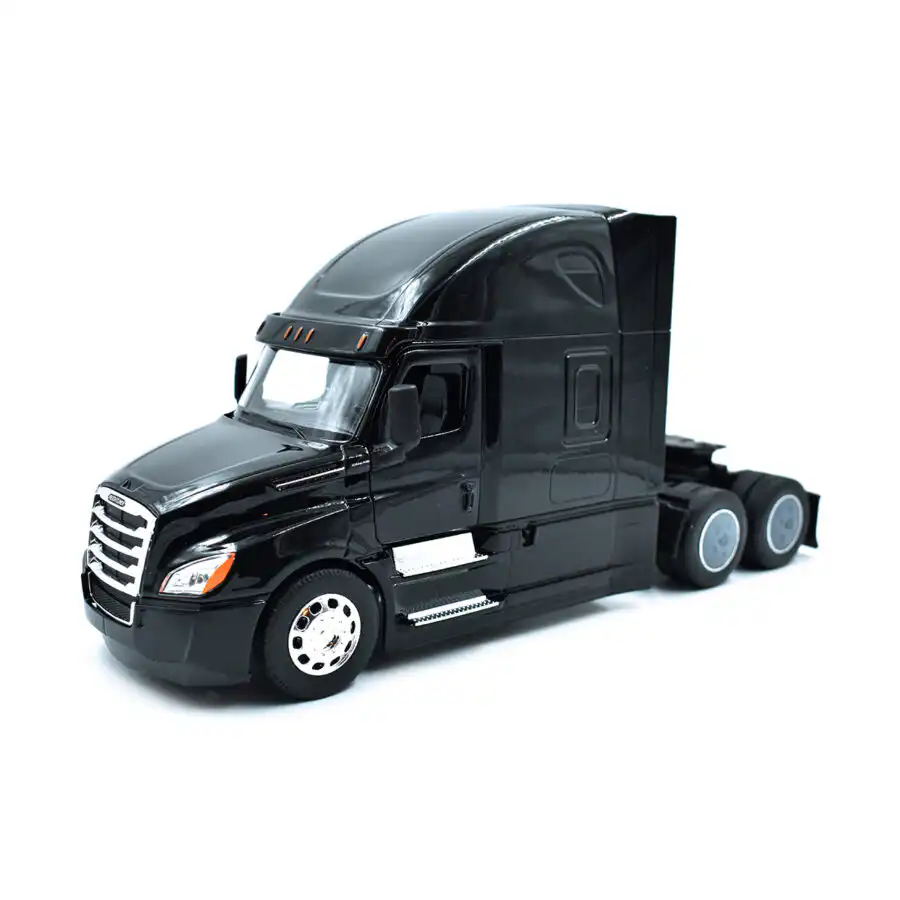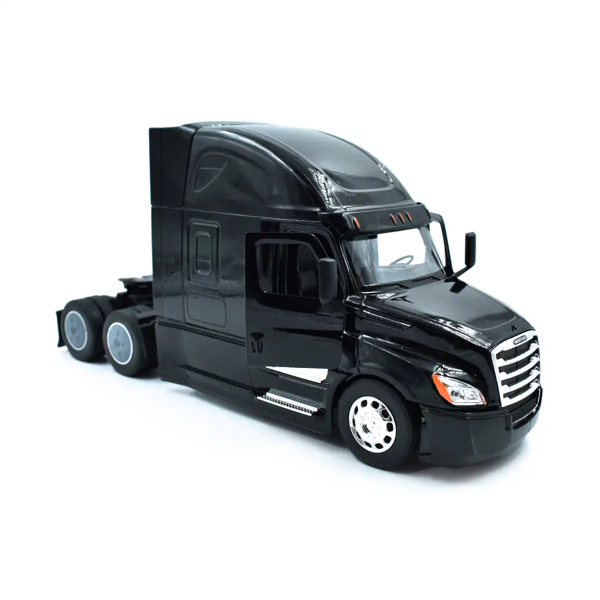 Tracto Freightliner Cascadia en color negro de Edición Limitada “Transporter” hecho por la marca Welly. Este modelo de tráiler a escala fabricado en alta calidad cuenta con puertas que abren, llantas de goma y es perfecto para coleccionistas y fanáticos de la marca Freightliner.