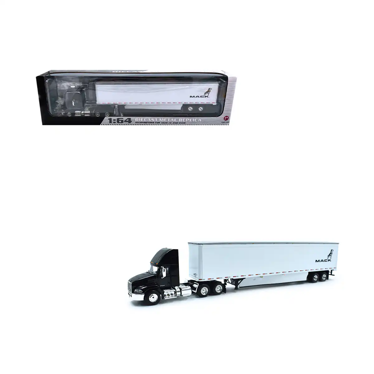Tráiler Mack Pinnacle Negro con Caja First Gear Escala 1/64