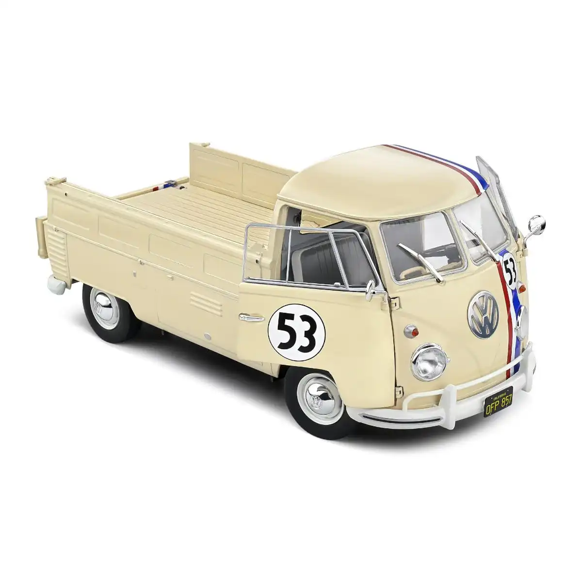 La Volkswagen Combi Pickup T1 1950 Crema Solido 1/18 captura la identidad del original en una pieza de colección pensada para coleccionistas que aprecian los detalles. En escala 1/18, su presencia es inmediata: puertas y batea se abren, silueta limpia y un acabado que se percibe a primera vista. Parte de la serie Herbie.