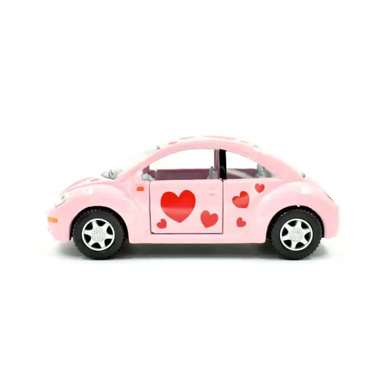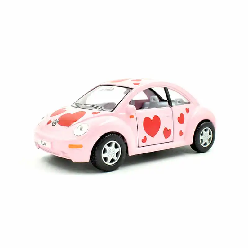 Adquiere este set de 2 piezas de Volkswagen New Beetle de Edición Especial «Corazón» con fricción, hecho con la excelente calidad de la marca Kinsmart.