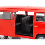 Volkswagen Bus T2 Combi Roja de edición especial hecha por la marca Welly. Este modelo de auto a escala fabricado en alta calidad cuenta con puerta derecha deslizable y ventana trasera que se abre, llantas de goma y es perfecto para coleccionistas y fanáticos de la marca Volkswagen.